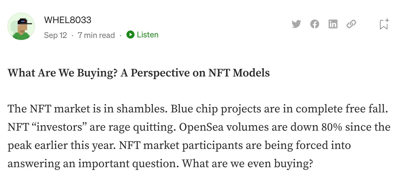 We are consumers, sure, but when we purchase an NFT the implicit agreement is that we are more than just consumers, maybe that is a terrible assumption to make, however, it is made by both sides. Projects want you to participate in the community, engage, network, champion the project on social media, perhaps build something, and, maybe even vote on proposals or future directions of how the project spends its treasury cash.